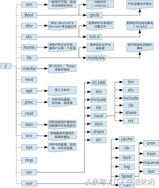 "/var":存放经常变动的数据,像日志.邮件等.这个目录下的数据,需要定期清理,最好写个脚本,放在crontab里。常见的子目录: