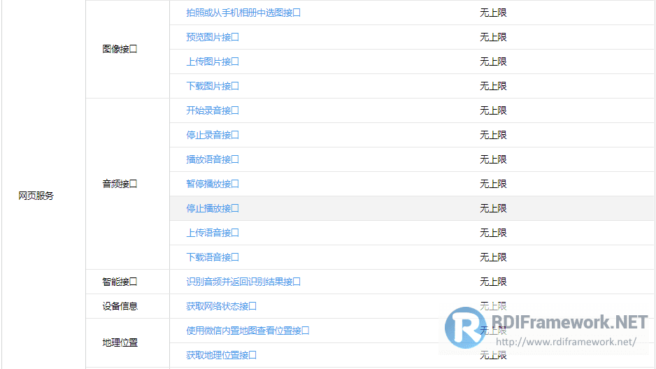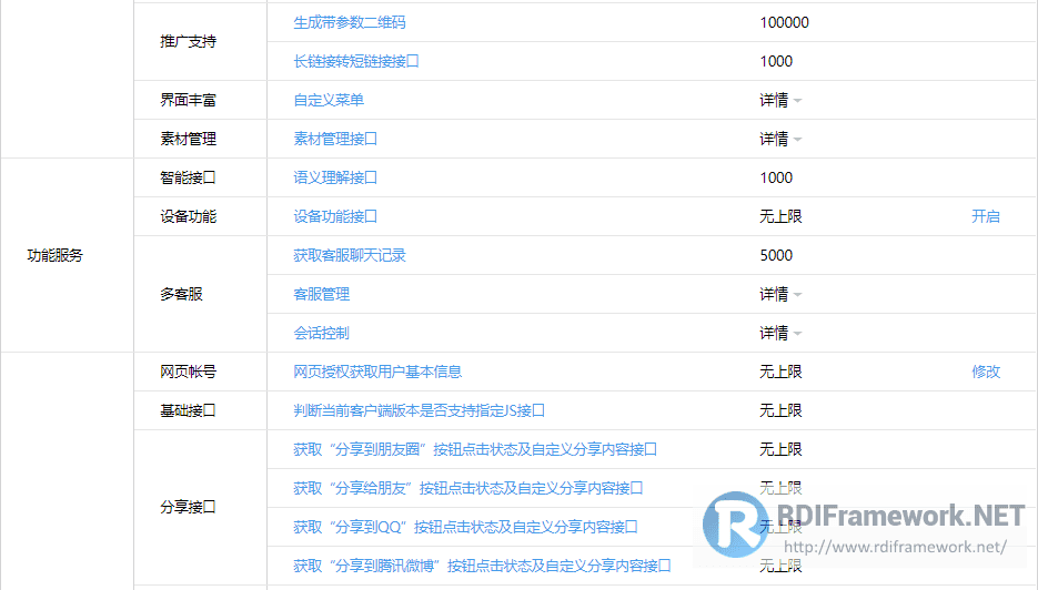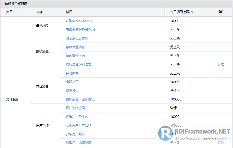 测试公众号的所拥有的接口权限如下: