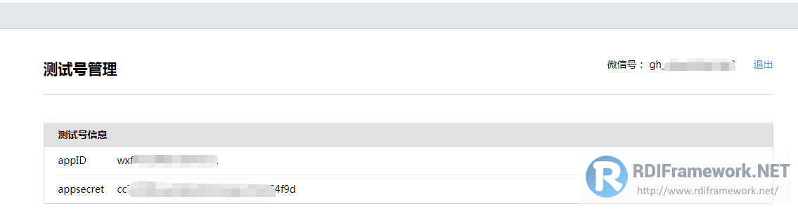 用微信扫描页面中的二维码进行登录,登录成功后,就可以看到腾讯分配给我们的测试公众号的信息了,如下图所示, 接下来我们就可以搭建环境,进行开发测试了。