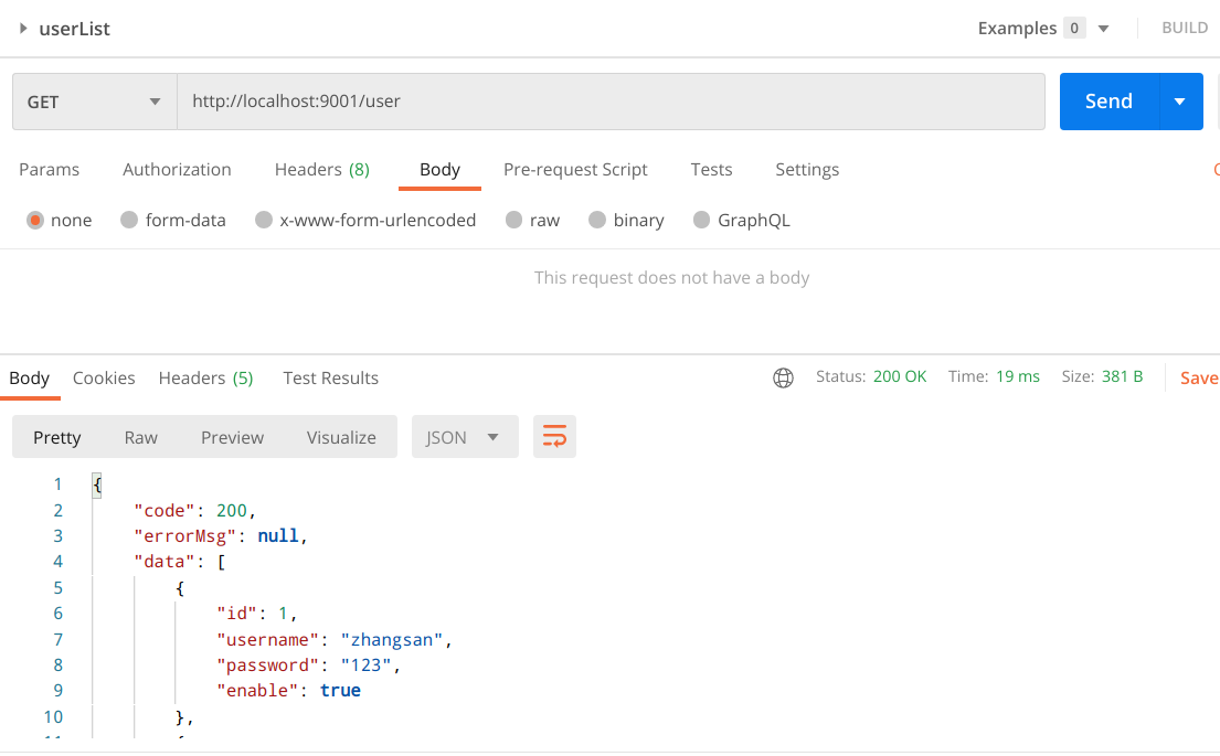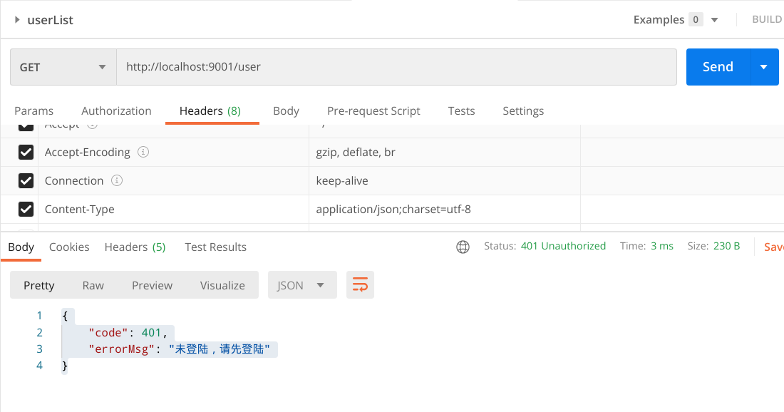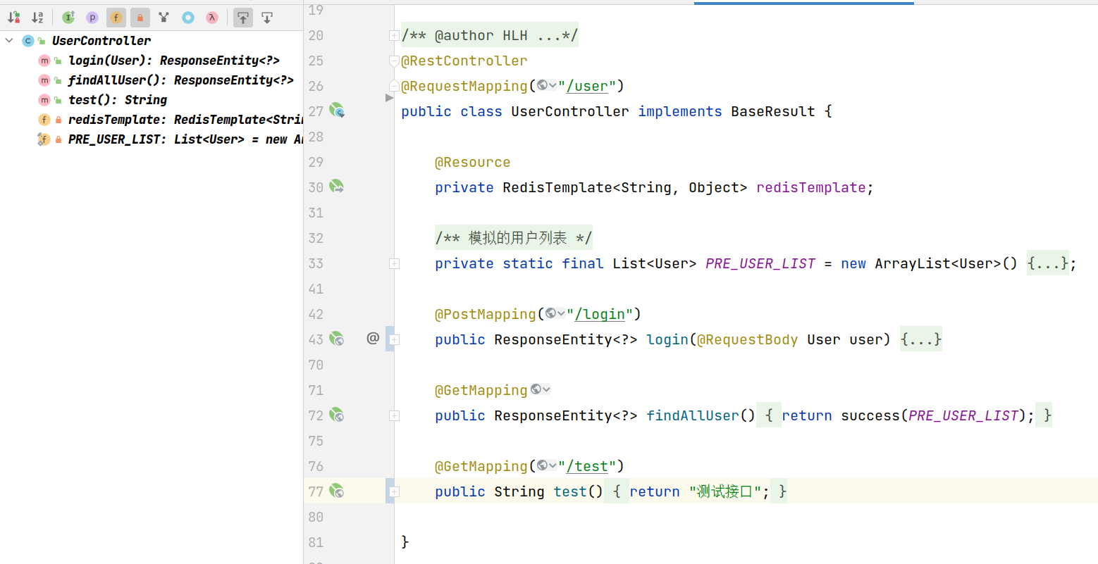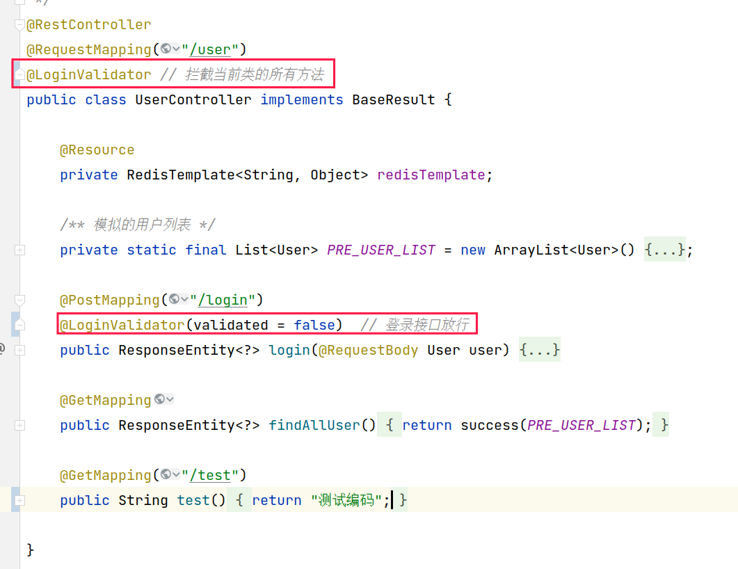 前置实现,登录逻辑,这通过UserController中提供了三个接口,登录,查询用户,测试接口